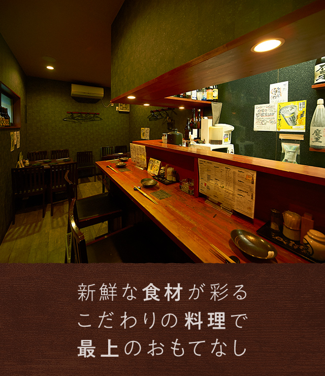 店主が毎日市場に行きその日のいい食材を厳選し、食材の良さを活かしたお料理をお出ししています。 旬の食材から出るダシの旨味や上質な油が口いっぱいに広がる自慢の逸品をぜひご賞味ください。